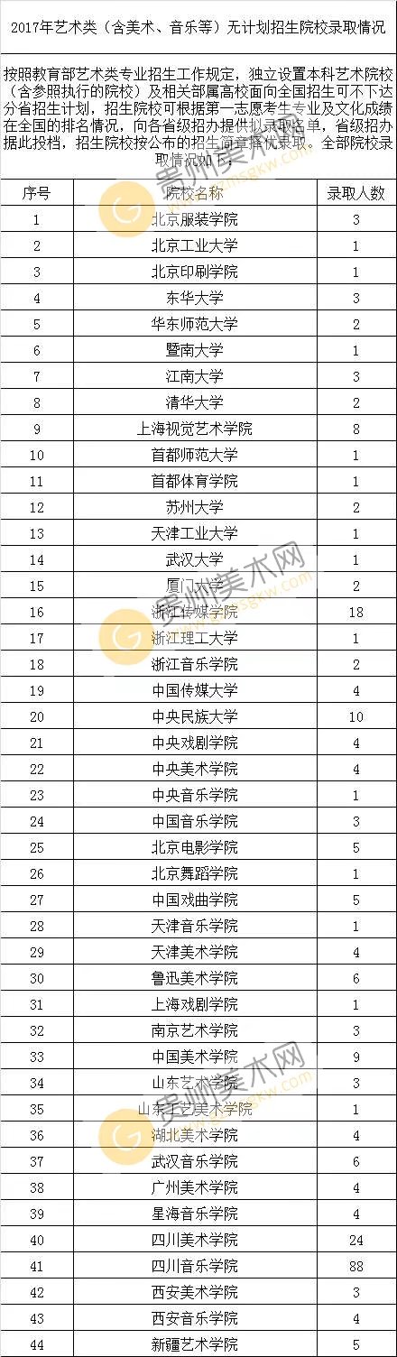 【完整版】2017年美术类平行志愿本科院校录取情况