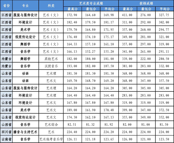 我校未设艺术类专业校考的省(自治区、直辖市)或专业,认可生源所在省(自治区、直辖市)艺术类专业招生联考成绩。