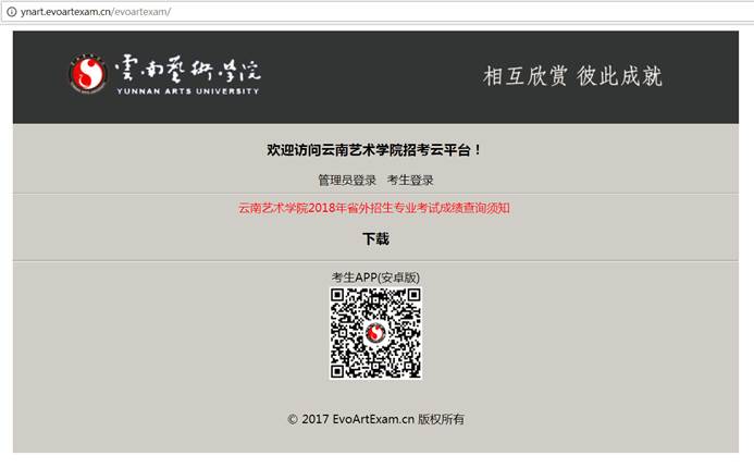 云南艺术学院2018招生专业考试成绩查询