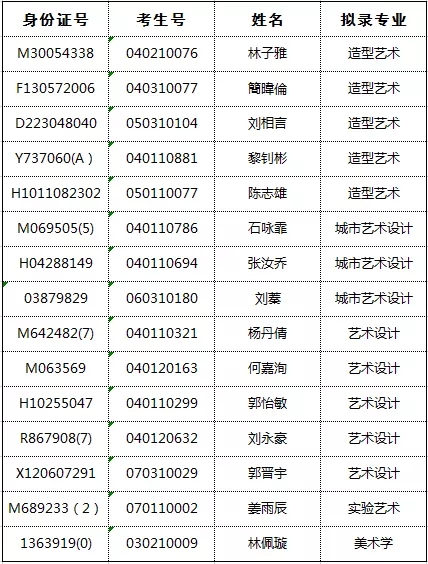 央美2018年本科华侨港澳台联招拟录取名单
