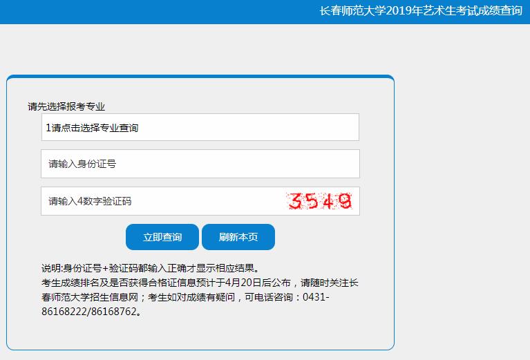 2019年长春师范大学艺术类校考成绩查询网址:http://2019yscj.cncnc.org/index.asp