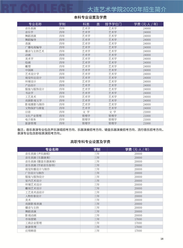 大连艺术学院是经教育部批准独立设置的全日制普通本科高校,是辽宁省唯一一所综合性全日制高等艺术院校。学校始终坚持社会主义办学方向,始终坚持立德树人为根本任务,以办党和人民满意的艺术大学为目标,以“明德、精艺、崇实、尚美”为校训、以“三个一切(一切为了学生、一切为了教学、一切为了学校发展)为办学理念,突出实践育人办学特色,构建了“舞台上、灯光下、一生多师”的创新型艺术人才培养模式。学校注重拓展学生的国际视野,与法国亚眠大学、泰国格乐大学开展国际合作办学分别设立了“丝路·青春国际艺术学院”,打造了学士、硕士、博士的国内国外一体化人才培养体系。学校在中国校友会网“中国艺术类民办大学排行榜中”位居前列,在国内外享有较高声誉。