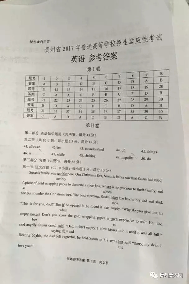 更多参考答案持续更新中,敬请关注贵州美术网官方网站!