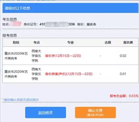 E. 提交已经报考的专业,确认报名专业与金额无误以后,点击【确认】去支付;